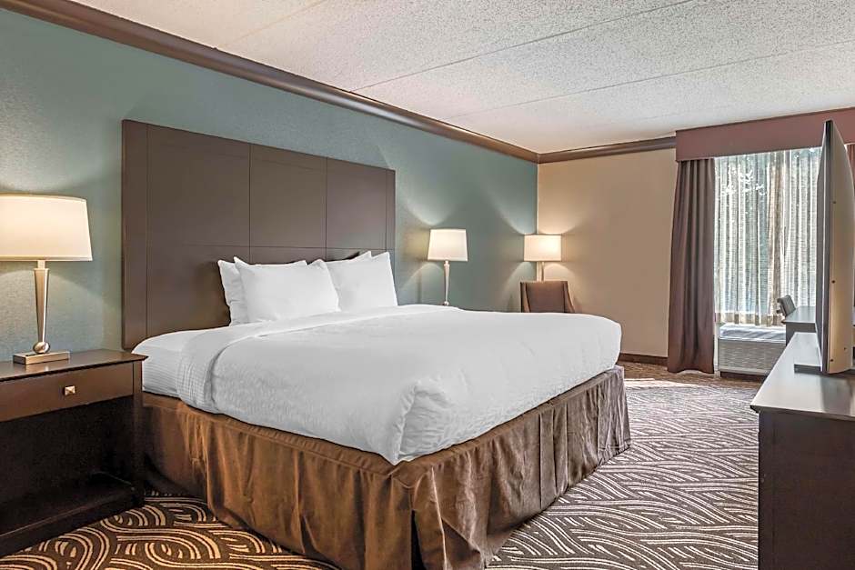 This accessible room features a flat-screen TV, coffee machine, refrigerator and microwave.